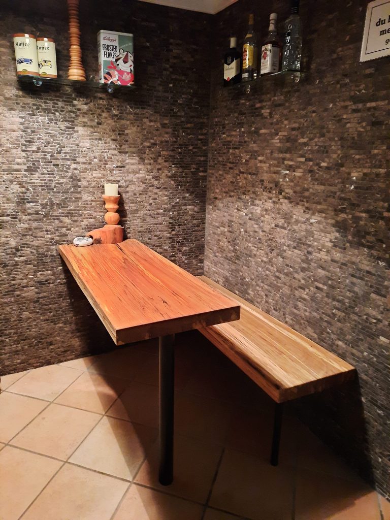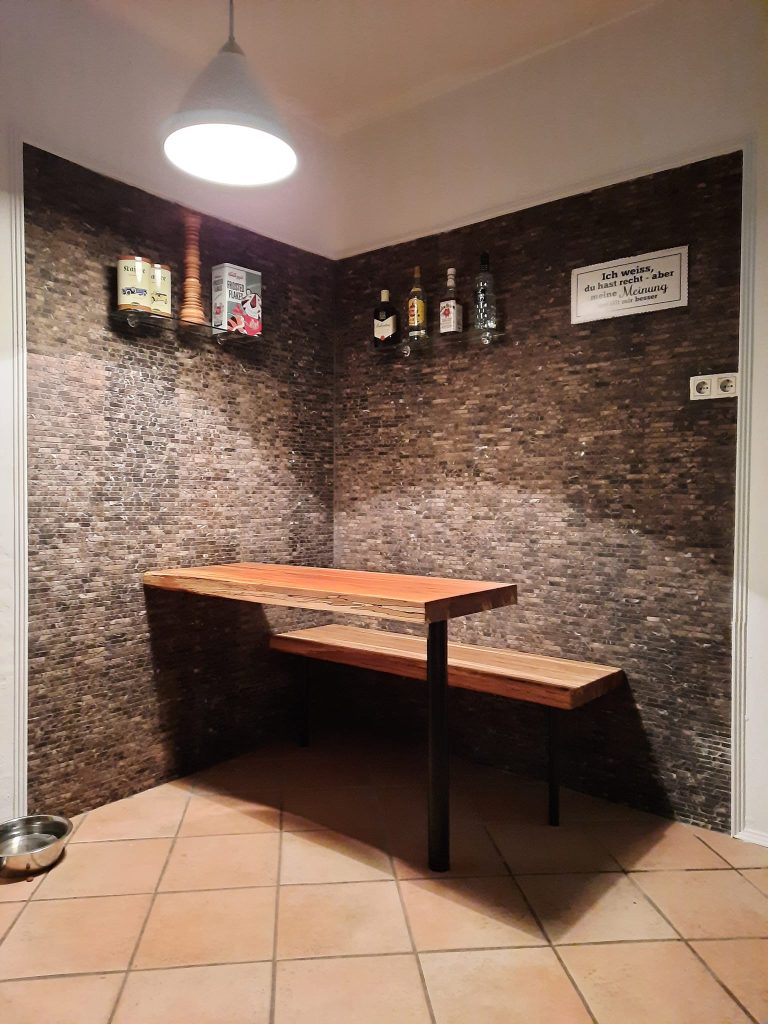Mit einer kleinen Bank und passendem Tisch dazu wurde hier eine leerer Raum im Küchenbereich zu einer Frühstücksecke umgestaltet. Ich denke dies ist gut gelungen.