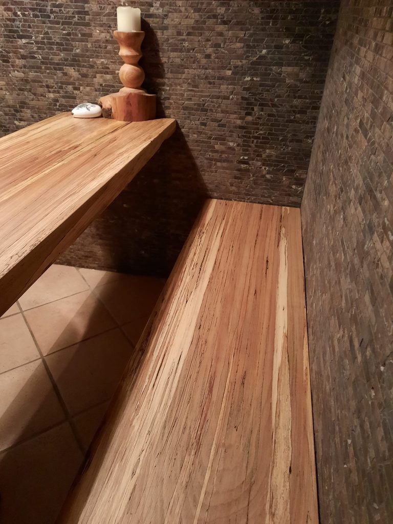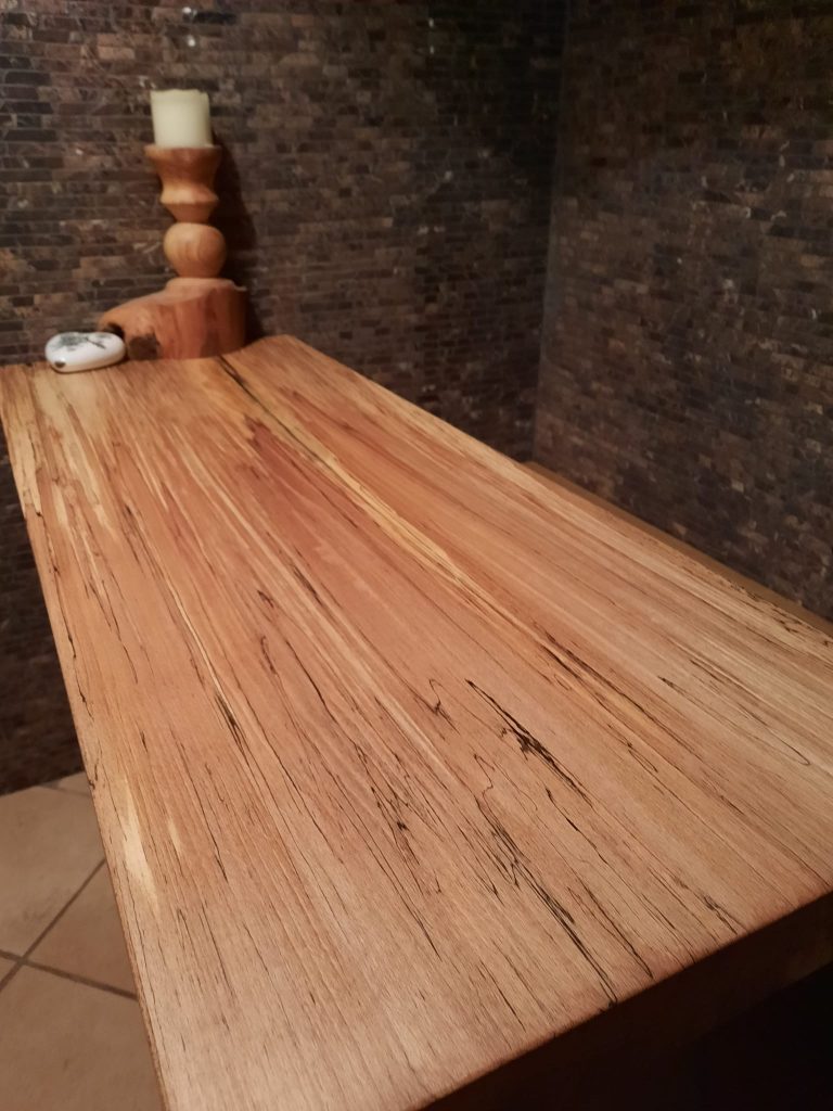 Gestockt heißt in diesem Fall, man lässt das Holz kontrolliert von „Pilzen“ befallen und unterbricht dies rechtzeitig, damit das Holz stabil bleibt. Durch den Trocknungsvorgang stirbt der Pilz im Holz ab unter hinterlässt je nach Holz unterschiedliche Zeichnungen in der Maserung… in diesem Fall die schwarzen Linien etc.