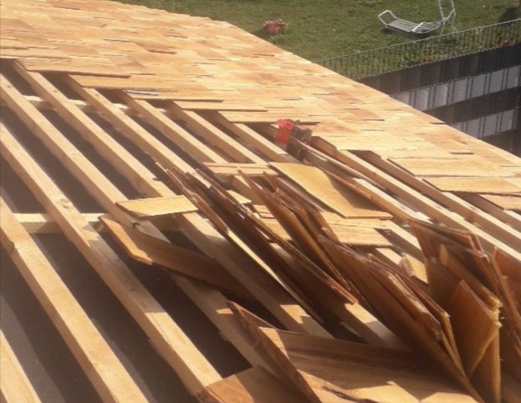 Zuschnitt der Schindeln, der Wandverkleidung und Baumstämme alles nach Kundenwunsch. Ein tolles Projekt und Ergebnis.