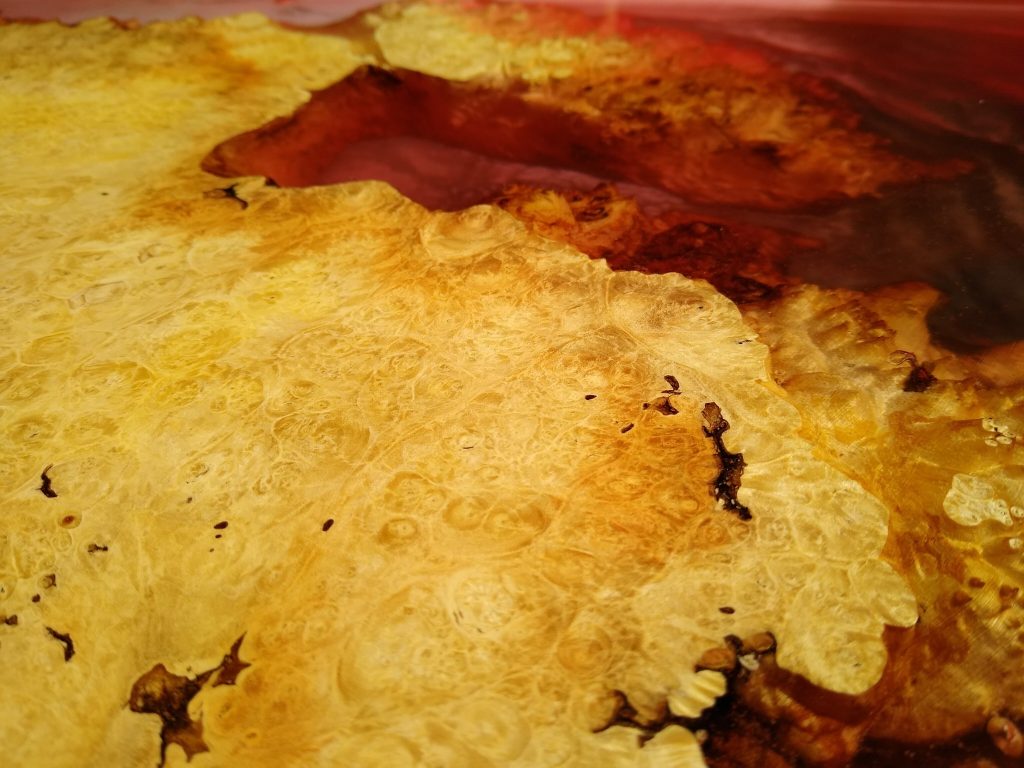 Wandbild „red Sky“März 27, 2025 Holzart: Eschen Ahorn Bearbeitung: Holzbearbeitung & Epoxidharz Arbeiten Projektbeschreibung Als Holz für das Projekt „red Sky“ wurde Eschen Ahorn verwendet, davon genauer gesagt ein Stück einer Maserknolle.Das Stück Maserknolle in Harz gegossen, mit schwarz/rotem Wolken-Effekt und transparentem Harz.Ein tolles Wandbild ist entstanden – derzeit noch zu haben.