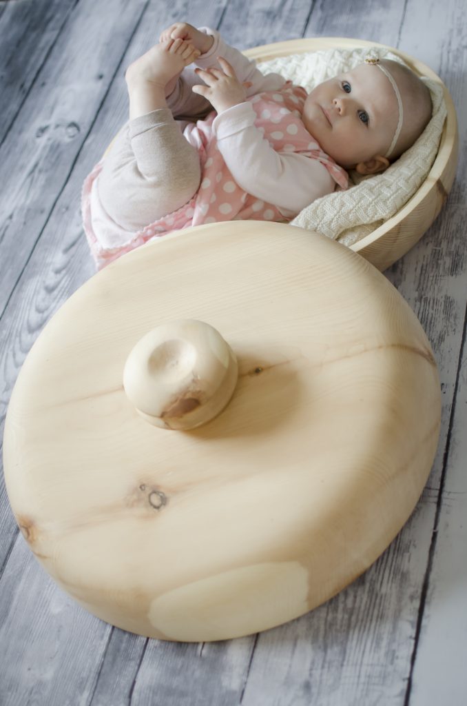 Mit 50+cm Durchmesser und über 20cm Höhe, fasst diese Brotdose nicht nur große Brotlaibe, auch wollte die Jüngste im Hause meiner Kunden gleich mal testen, wie man da drinnen liegt